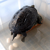 2013年 7月20日(土) 食欲の落ちていたクサガメの マルコが産卵。一気に16個も!これだけの量がよく収まっていたものだ。