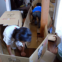 2013年 9月22日(日) 子連れで都内の友人宅へ。息子と同い年の娘さんが部屋で作って遊ぶは ダンボール迷路!ダイナミック だ (^^;